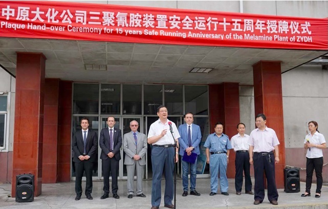 We are pleased to announce that on late June 2015 Eurotecnica and Henan Zhong Yuan Dahua have celebrated in Puyang their 15th anniversary of safe operation of the first high-pressure melamine production complex ever implemented in China.