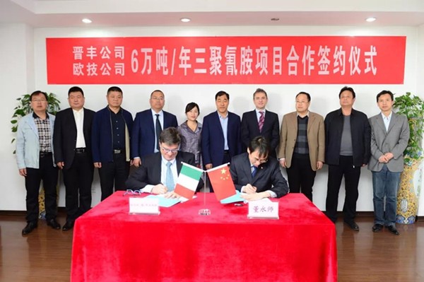 On April 18th, 2019, JAMG Group’s Shanxi Jinfeng Coal Chemical Co., Ltd. and Proman Group’s Milan based Eurotecnica Company sealed a cooperation agreement for the implementation of 60,000 ton/year melamine project.